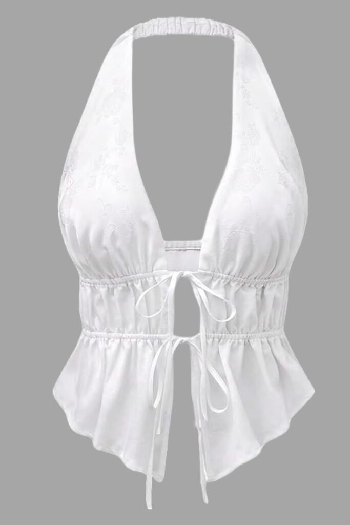 Blusa plisada de cuello halter con nudos delanteros