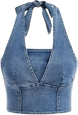 Blusa denim con cuello ajustable y escote en V