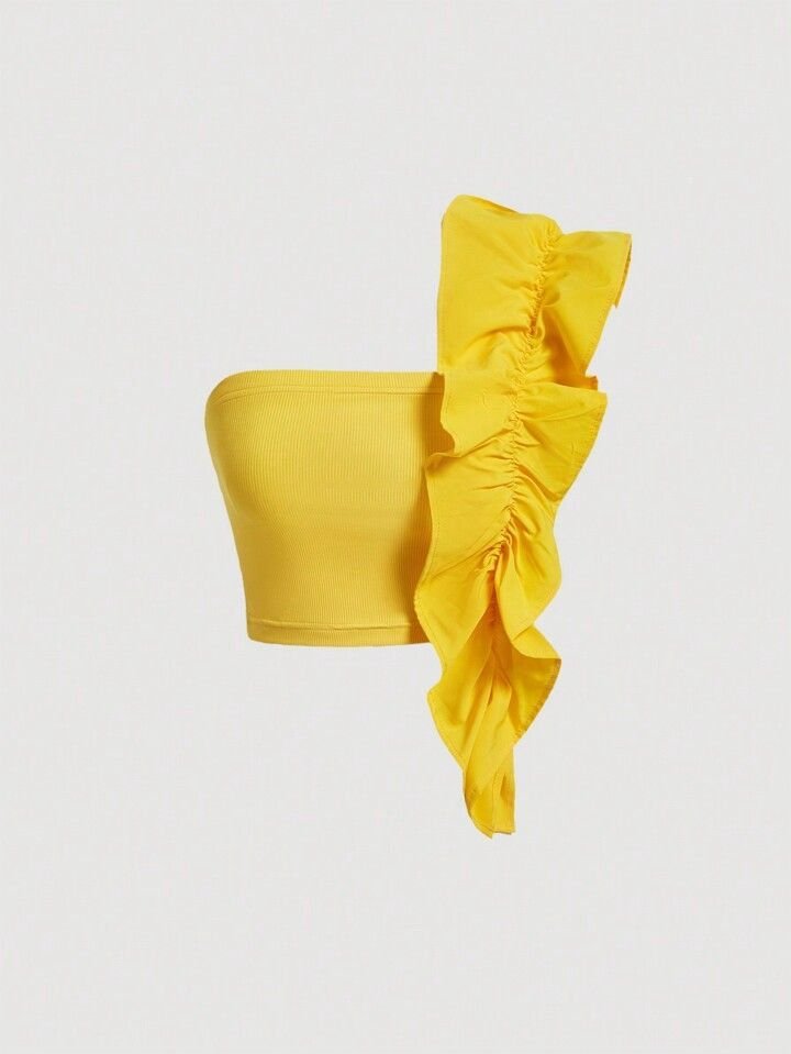 Crop top de hombro fruncido lateral