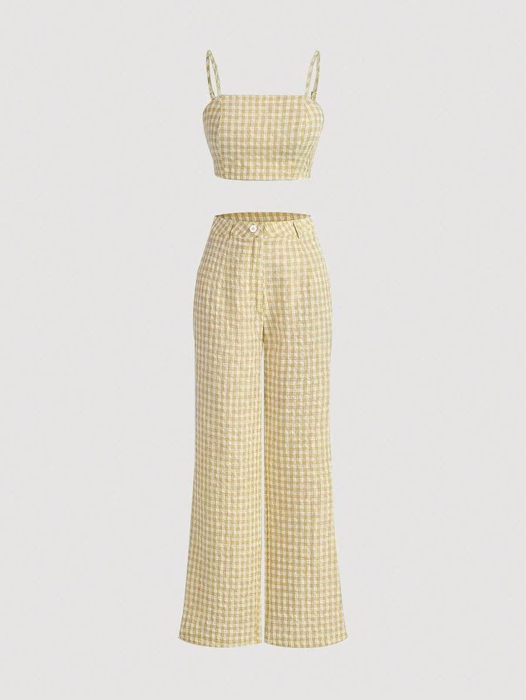 Set de top y pantalón acampanado de cuadros