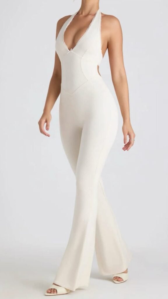 Enterizo sin espalda y de corte en V y acampanado
