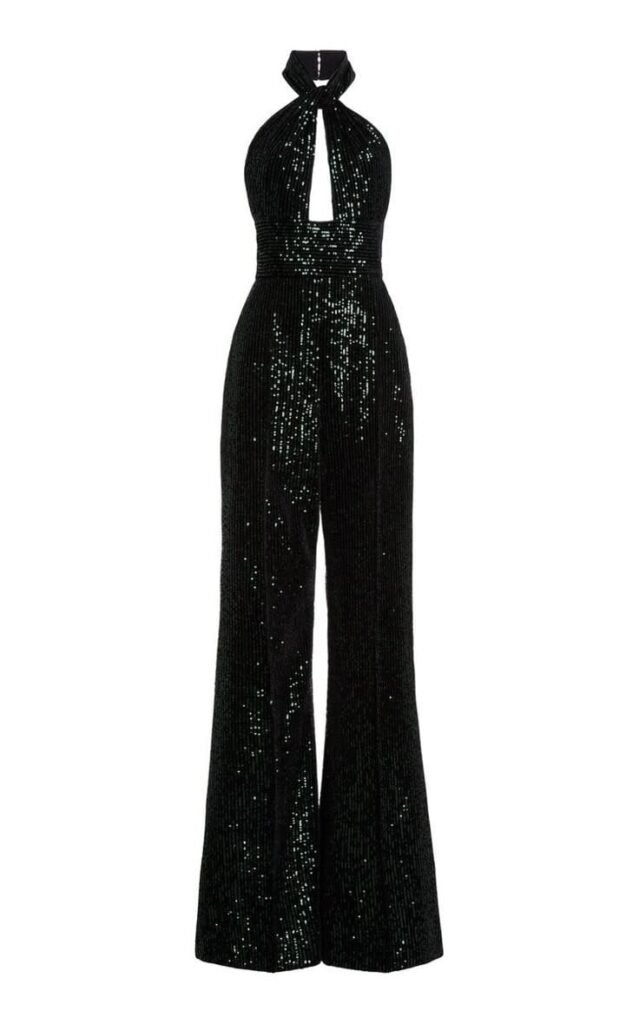 Enterizo con destellos de cuello halter y acampanado