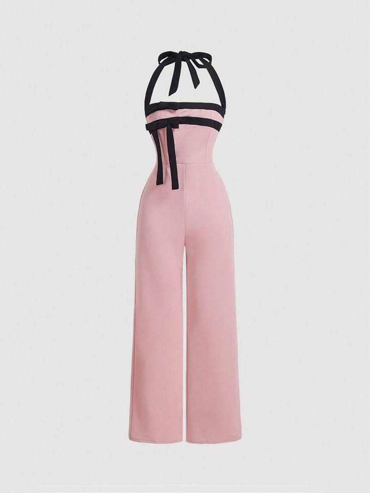 Enterizo elegante con cuello ajustable y lazo de contraste